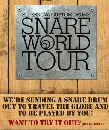 Each person will have 7 days to play the snare before it gets sent on to another drummer. The Snare World Tour will all be coordinated on Facebook.com/supernovacustomdrumssnareworldtour, with a map of where the snare drum has traveled to on their website at Supernovadrums.com. All of the rules and the terms and conditions can be seen on both their main website and on the Snare World Tour Facebook page.