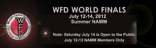 NAMM announces the twelfth effort to find the “World’s Fastest Drummer”. This highly charged interactive event is a feature at this year’s Summer NAMM Show in Nashville, TN. The contest, which consists of two categories, Fastest Hands and Fastest Feet, will be held each day on World’s Fastest Drummer Lobby Stage at the Nashville Convention Center starting at 11:00 A.M. Thursday, July 12, with “heats” continuing through 1:00 P.M. on public day Saturday July 14. The top ten Fastest Hands and top ten Fastest Feet will compete in a “Finals Battle” of both categories held at 2:00 P.M., Saturday, July 14.