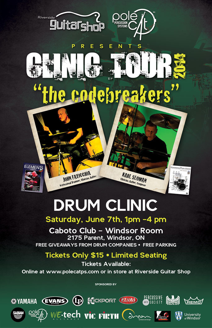 Don’t miss out, go to www.polecatps.com and register for the drum clinic with John Favicchia; professional drummer, author, clinician with Karl Sloman; author, composer, clinician.