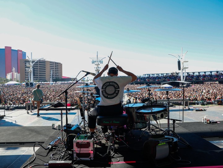 The When We Were Young Festival began in 2017 in Santa Ana, CA and was revived in 2022 at its new home at the Las Vegas Festival Grounds. Since 2023, When We Were Young has been a two-day festival of the same lineup. Headlining this year was Blink-182 (Travis Barker) and the return of Panic! At the Disco for two very special performances celebrating the 20th anniversary of their debut album A Fever You Can’t Sweat Out. This was Panic! At the Disco’s first performances since disbanding in 2023. Their lineup with drummer Dan Pawlovich on drums, was the same as 2023, and original drummer Spencer Smith joined in on the final song “I Write Sins Not Tragedies.” There was a total of 15 bands on the two side by side main stages, so there were no overlapping set times. In addition to Blink-182 and Panic! At the Disco, Weezer (Patrick Wilson,) Avril Lavigne (Chris Reeve,) The Offspring (Brandon Pertzborn,) Simple Plan (Chuck Comeau,) Boys Like Girls (John Keefe,) and Yellowcard (Jimmy Brunkvist,) performed on those stages. For anyone that grew up in the 90s, this was certainly a dream lineup. Additionally, there were 40 bands on the rotating side stages including Ice Nine Kills (Adam Reed,) Bad Religion (Jamie Miller,) Alexisonfire (Jordan Hastings,) and The Plot In You (Michael Cooper.)