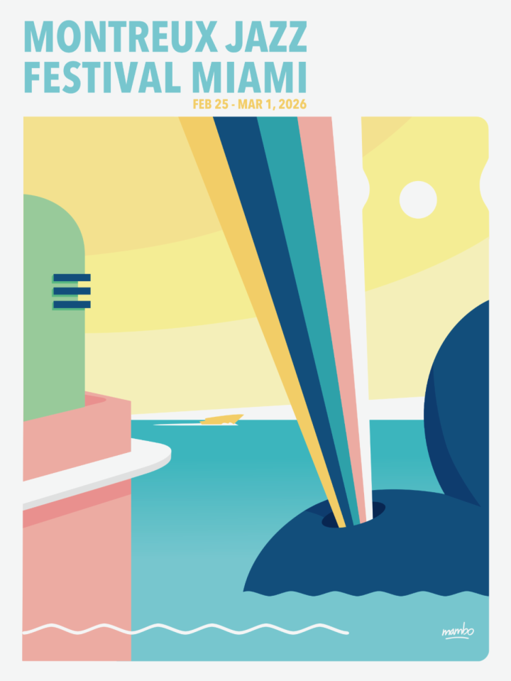 As is tradition with Montreux Jazz Festival – a Montreux Jazz Festival Miami poster for 2026 has been revealed, created by Mambo. Born in Santiago de Chile, 1969, Mambo is a polyglot artist, his different artworks series go from semi-abstract graphic interplays of lines and spontaneous designs (Brainology), to abstract action painting (Strokes) as well as minimal and caricatural portraits (Humans). Advertisement