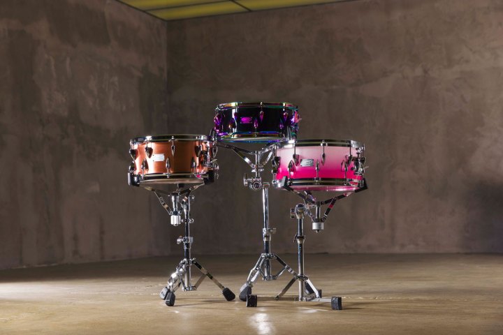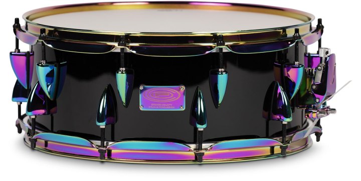 GN: All the hardware on the drum sets and snares can be done with the spectrum effect. The new birch 14×5.5” has everything with this finish, including the hoops, lugs, snare strainer, and even the badge.