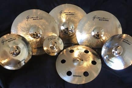 Drums: DW Design Series Acrylic w/ True Hoops. 6×14 Black Ice Sparkle Edge Snare drum (maple center), 6.5×14 Ribbed Brass over Steel (spare snare drum.) Rack Toms: 8×10, 9×12, Floor Toms: 12×14, 14×16, 16×18; Bass Drum: 18×22 Bass Drum w/…