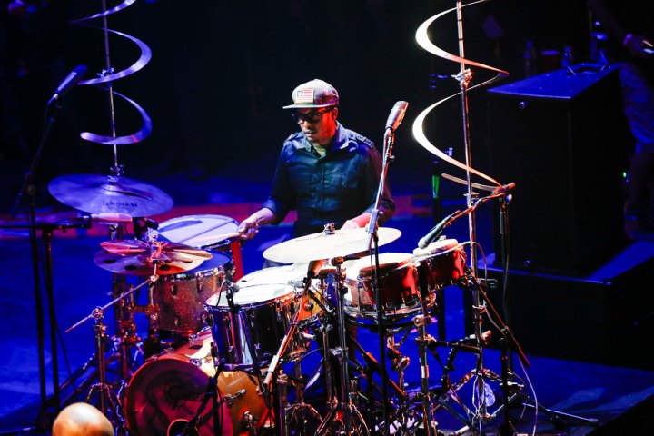 “Thank you, Modern Drummer, as a person that’s been reading your magazine since I was 11-12 years old, it was the way that I knew what drum products were out there. It was the way that I was informed about the incredible drummers, and it also was a place for me to dream. Looking at that magazine is very much responsible for the life that I have now, the products I play, the way that I show up in the drumming community. It is because of the narrative that Modern Drummer magazine began for me in my life, and really the seed that they planted within me to be a drummer and to want to be a drummer on the highest level. So thank you. Thank you to all those that voted. And just thank you to all the companies that support me. Thank you to the art form of jazz. Behind me is Warren Baby Dodds. He’s the beginning, one of the beginning masters of this art form, going all the way back to New Orleans. So continue to support drummers making music in real time with real people. Thank you all. God bless you.”